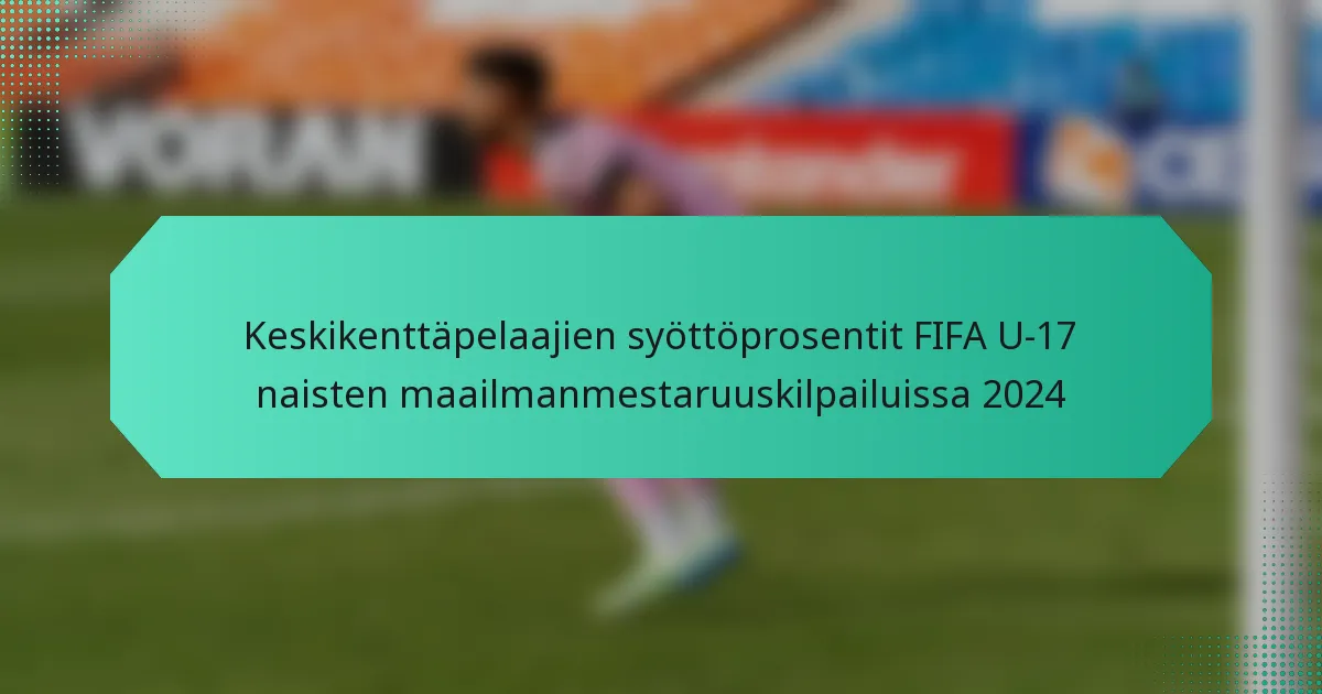 FIFA U-17 naisten maailmanmestaruuskilpailuissa 2024 keskikenttäpelaajien syöttöjen onnistumisprosentit vaihtelevat merkittävästi, mikä heijastaa eri joukkueiden taitotasoa ja strategioita. Yhteenvetona nämä prosentit tarjoavat näkemyksiä keskikenttäpelaajien tehokkuudesta pallon hallinnassa ja hyökkäysten mahdollistamisessa.