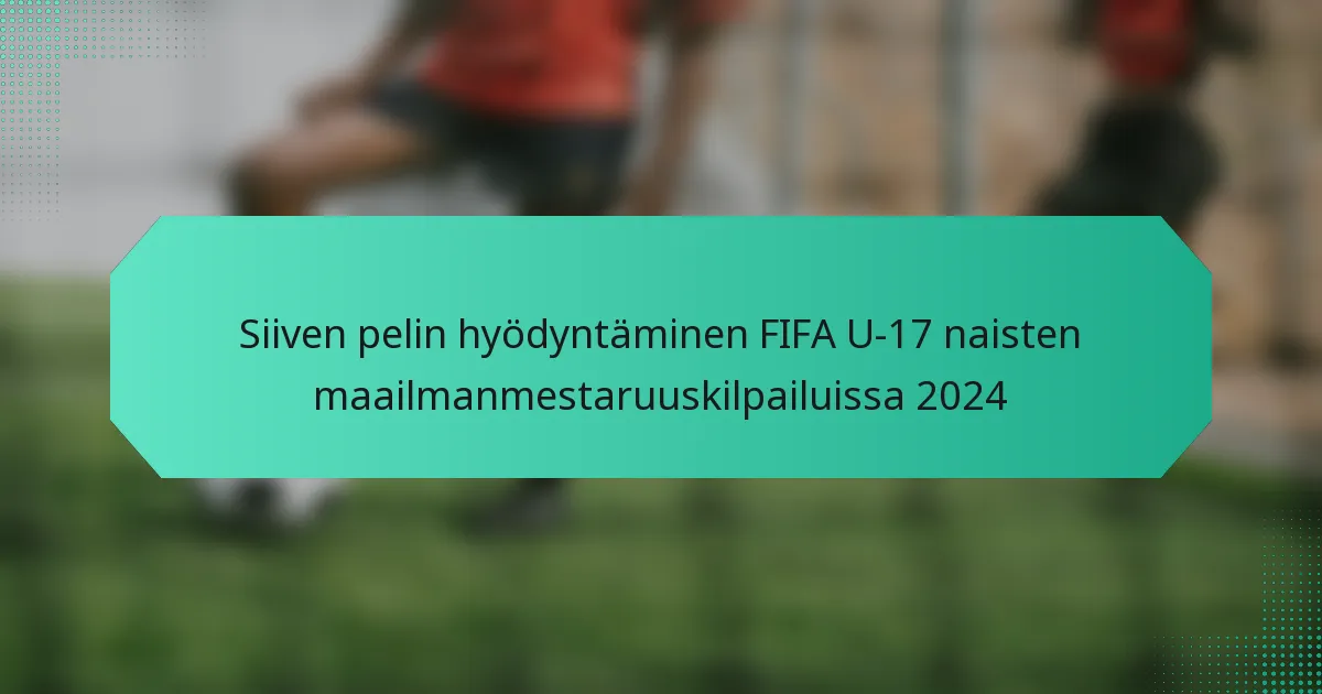 Siipipelin hyödyntäminen FIFA U-17 naisten maailmanmestaruuskilpailuissa 2024 voi olla ratkaiseva tekijä joukkueille, jotka pyrkivät maksimoimaan maalintekonsa. Strategisesti laitoja hyödyntämällä joukkueet voivat venyttää puolustusta ja toimittaa tarkkoja keskityksiä, mikä mahdollistaa tilan hyödyntämisen laidoilla ja lisää maalintekopaikkoja. Tämä taktinen lähestymistapa ei ainoastaan paranna hyökkäyskykyjä, vaan vaatii myös huolellista suunnittelua puolustuksen tukevan rakenteen ylläpitämiseksi.